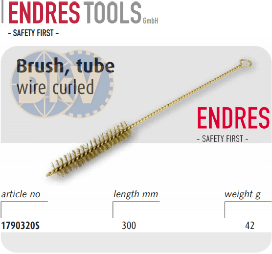 - Bàn chải chống cháy nổ Endres 1790320S, Endres non sparking brushes & scrubbers 1790320S là loại bàn chải được chế tạo bởi hợp kim đồng nhôm (Br Al) hoặc đồng beri (Cu/Be), có tác dụng không gây đánh lửa khi xảy ra va chạm, phù hợp với chải/đánh bóng trong môi trường phòng chống cháy nổ, có chiều dài: 300 mm.