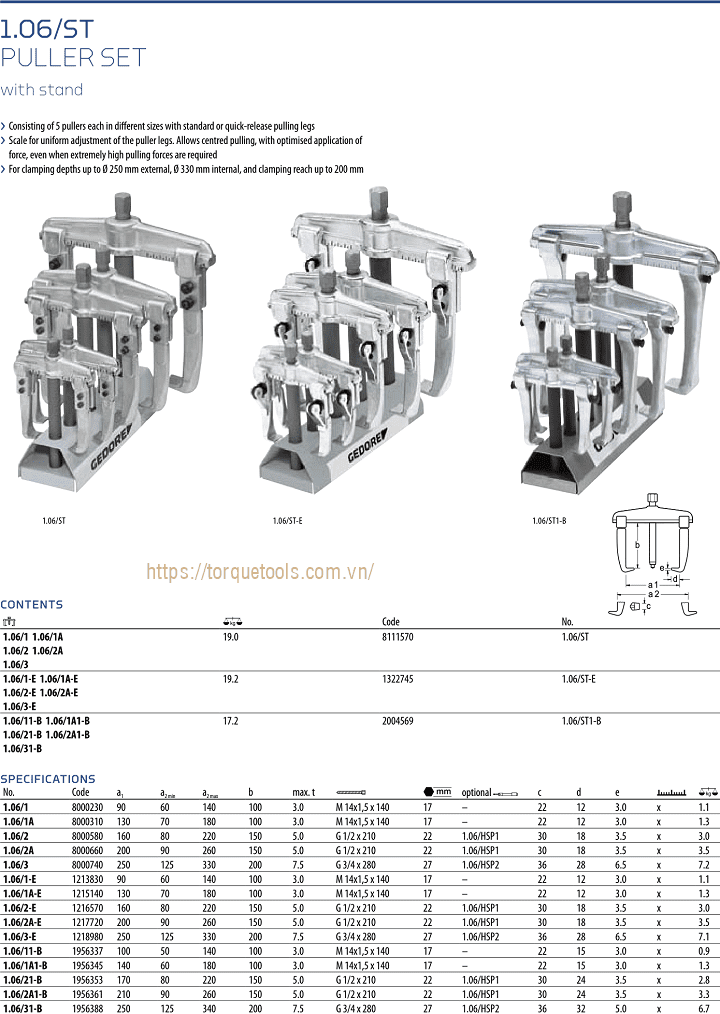 Cảo 2 chấu Gedore 1.06/2A1 -B (5 tấn, 210 mm): 1 chiếc.