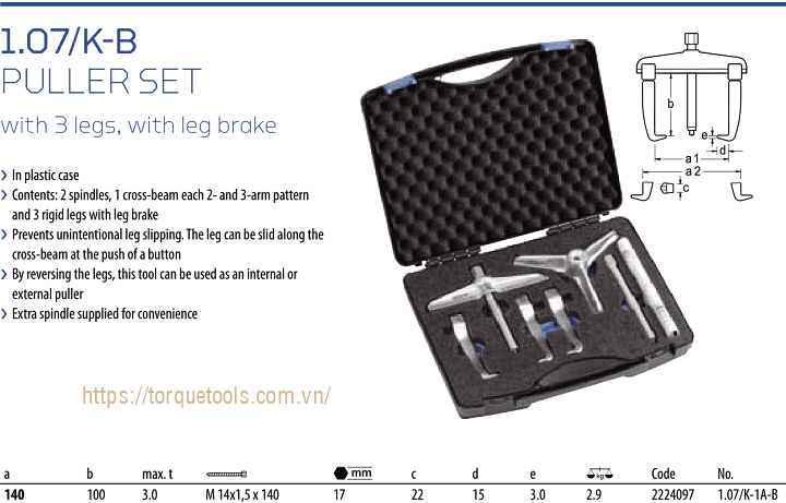BỘ CẢO CƠ KHÍ GEDORE 1.07/K-1A-B | GEDORE JAW PULLER SETS 1.07/K-1A-B | 3 tấn | 140 mm