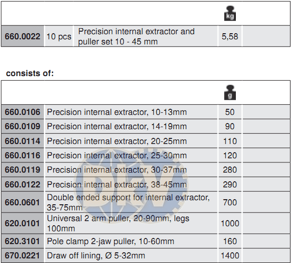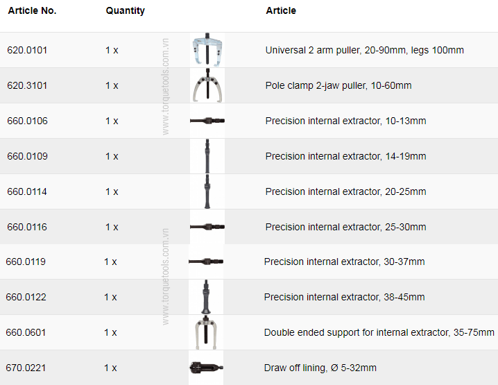 - Bộ cảo cơ khí KS Tools 660.0022, KS Tools puller set 660.0022 gồm 10 chi tiết chuyên dùng để tháo/lắp vòng bi, bạc đạn trong công nghiệp. Bộ cảo cơ khí KS Tools 660.0022 có sức móc max: 4.5 tấn, độ mở max: 90 mm