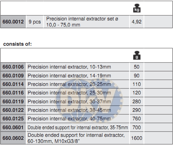 - Bộ cảo móc lỗ KS Tools 660.0012, KS Tools Precision internal extractor set 660.0012 dùng để móc vòng bi, bạc đạn, puli, bánh đà... cỡ nhỏ trong công nghiệp, đường kính móc: Ø10 - Ø75 mm.