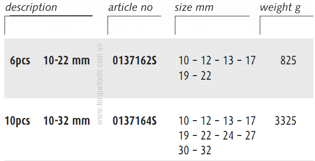 - Bộ cờ lê chống tia lửa điện Endres 0137162S được chế tạo theo tiêu chuẩn DIN 3110.