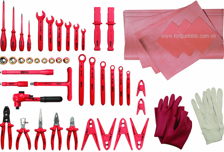 - Kìm, tô vít, cờ lê, khẩu và tay công tay cách điện của KS Tools, chế tạo theo tiêu chuẩn IEC 60900.