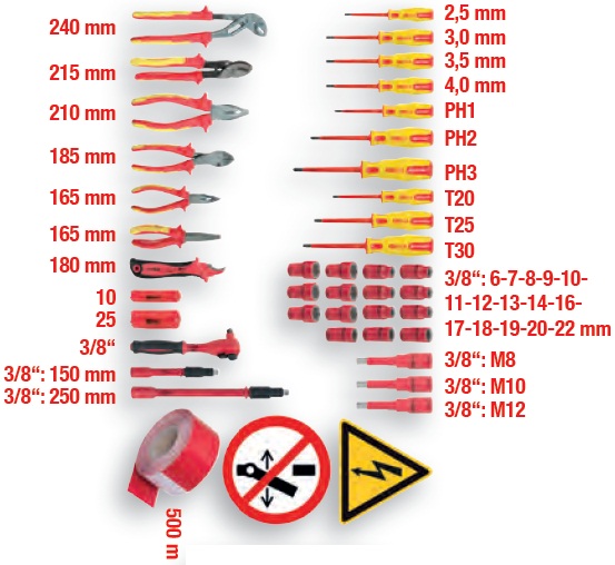 - Bộ dụng cụ cách điện KS Tools 117.1890, KS Tools VDE tools set 117.1890 là hộp dụng cụ 53 chi tiết cách điện, gồm: kìm, tô vít, khẩu, tay vặn đa năng, dao rạchcách điện, găng tay cách điện, băng dính cách điện...