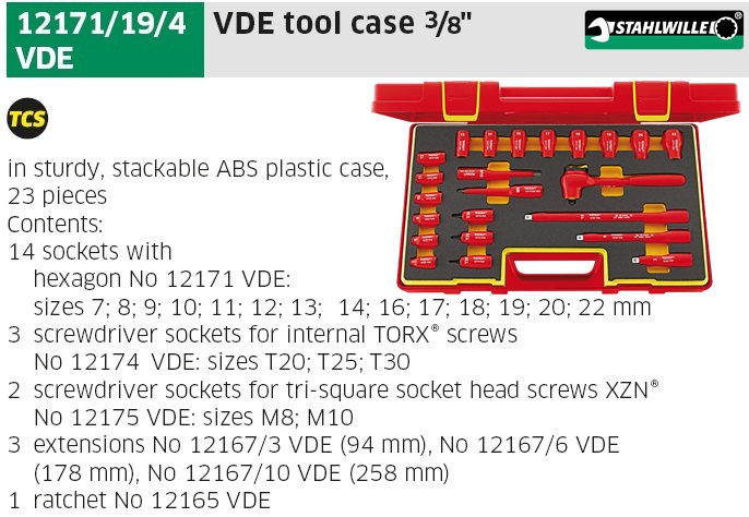 BỘ DỤNG CỤ CÁCH ĐIỆN STAHLWILLE 12171/19/4 VDE | STAHLWILLE VDE TOOLS SET 12171/19/4 VDE | 3/8" | 23 chi tiết