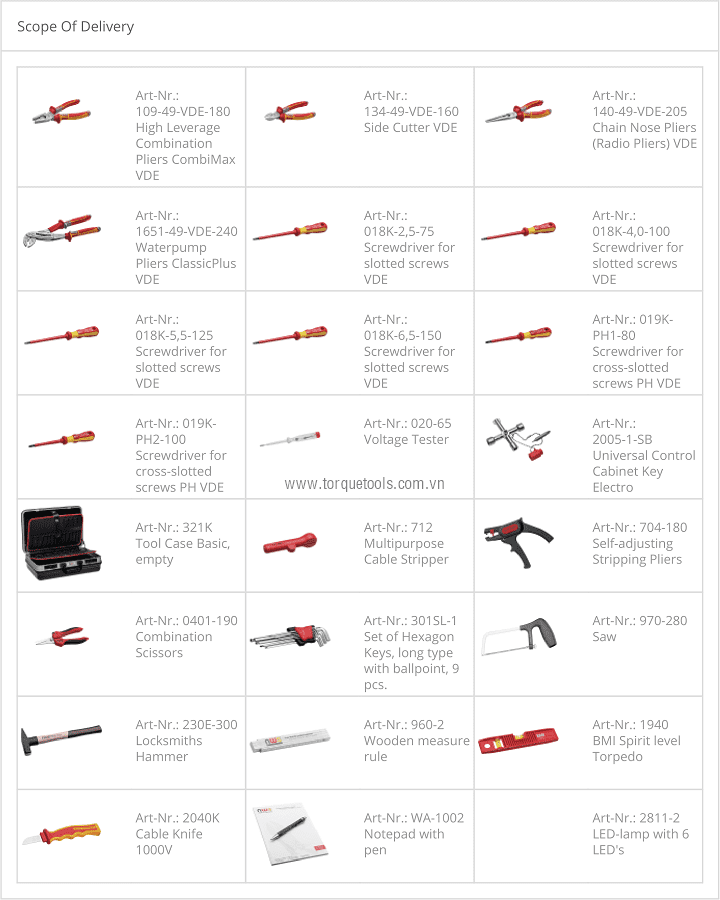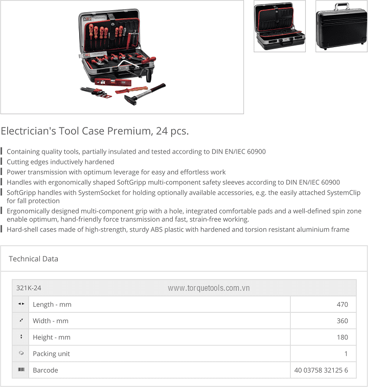 Toàn bộ bộ dụng cụ cách điện NWS 321K-24 đóng trong hộp carton. Made in Germany.