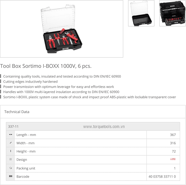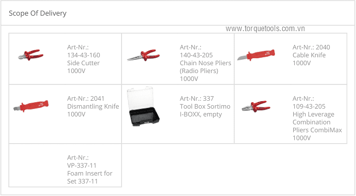 Toàn bộ bộ dụng cụ cách điện NWS 337-11 đóng trong hộp carton. Made in Germany.