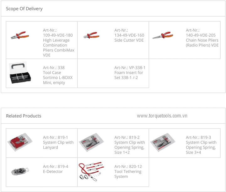 - Kìm đa năng 109-49-VDE-180: 1 chiếc.