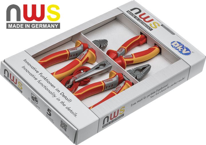 Toàn bộ bộ dụng cụ cách điện NWS 782 đóng trong hộp carton. Made in Germany.