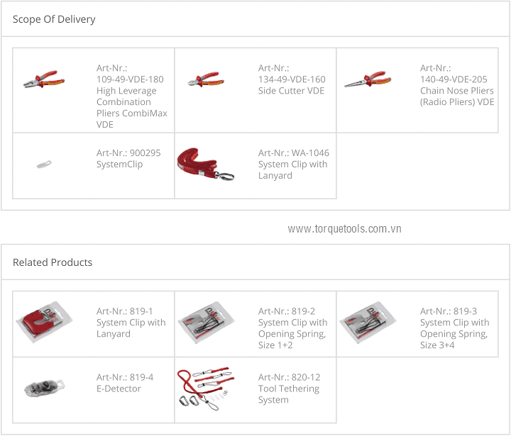 - Kìm đa năng 109-49-VDE-180: 1 chiếc.