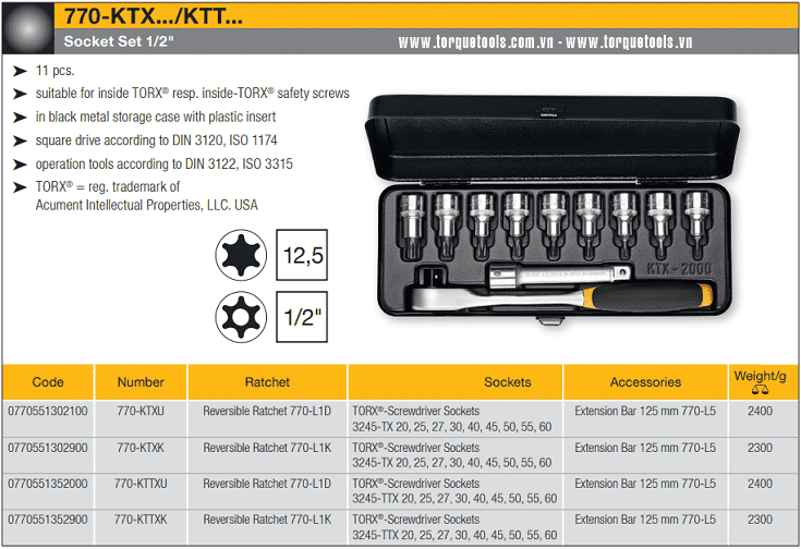BỘ KHẨU ELORA 770-KTTXU | ELORA SOCKET SET 770-KTTXU | 1/2" | 11 chi tiết