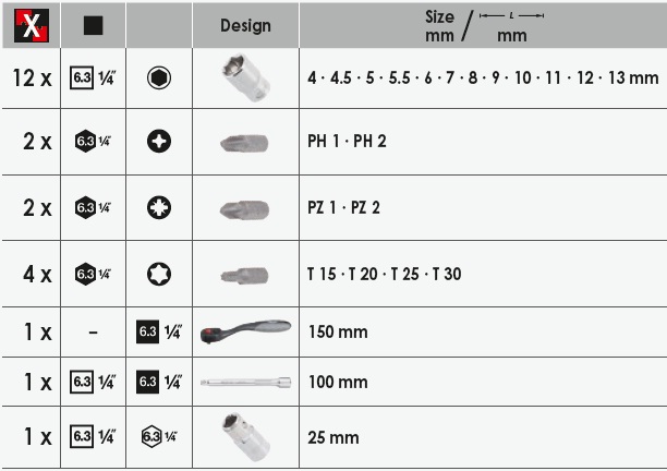 - Bộ dụng cụ Vigor V3734, Vigor tools set V3734 gồm 23 chi tiết khẩu 1/4" và lục 1/4", cùng tay công, khẩu dài, được đóng trong hộp nhựa.