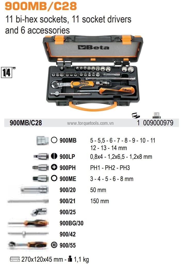 BỘ KHẨU BETA 900MB/C28 | BETA SOCKET SET 900MB/C28 | 1/4" | 28 chi tiết