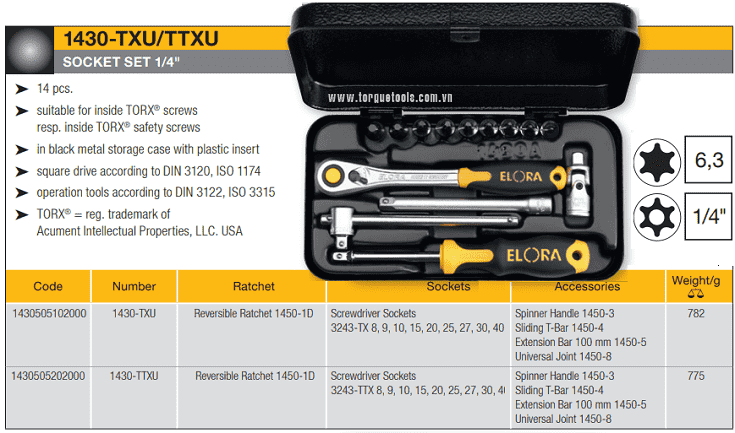 BỘ KHẨU ELORA 1430-TTXU | ELORA SOCKET SET 1430-TTXU | 1/4" | 14 chi tiết