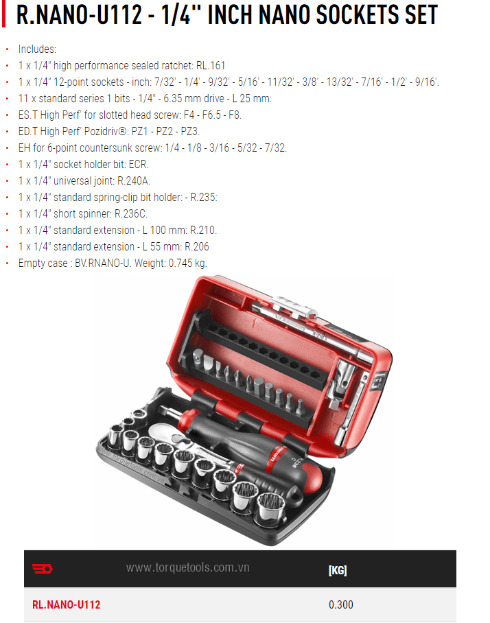 - Toàn bộ bộ khẩu Facom RL.NANO-U2 đóng trong hộp nhựa, trọng lượng: 0.745 kg. Made in France.