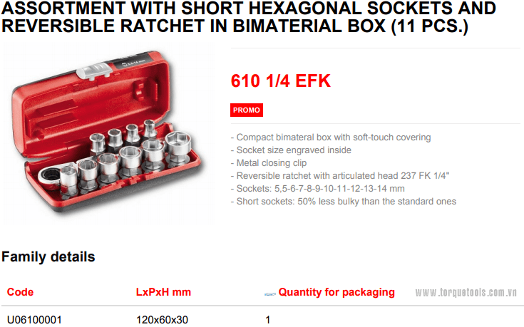 BỘ KHẨU USAG 610 1/4 EFK | USAG SOCKET SET 610 1/4 EFK | 1/4" | 11 chi tiết