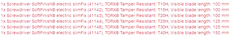 - Bộ tô vít cách điện Wiha 41245 gồm 6 tô vít 6 cạnh tiêu chuẩn TorcX Tamper: T10H, T15H, T20H, T25H, T30H và T40H (Model: 41141, 41142, 41143, 41144, 41146, 41147).