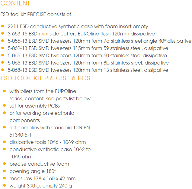 BỘ DỤNG CỤ CHỐNG TĨNH ĐIỆN BERNSTEIN 2210 | BERNSTEIN ESD TOOLS SETS 2210 | 6 pcs