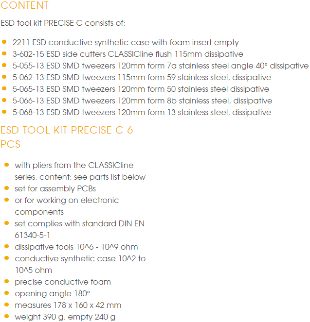 BỘ DỤNG CỤ CHỐNG TĨNH ĐIỆN BERNSTEIN 2212 | BERNSTEIN ESD TOOLS SETS 2212 | 6 pcs