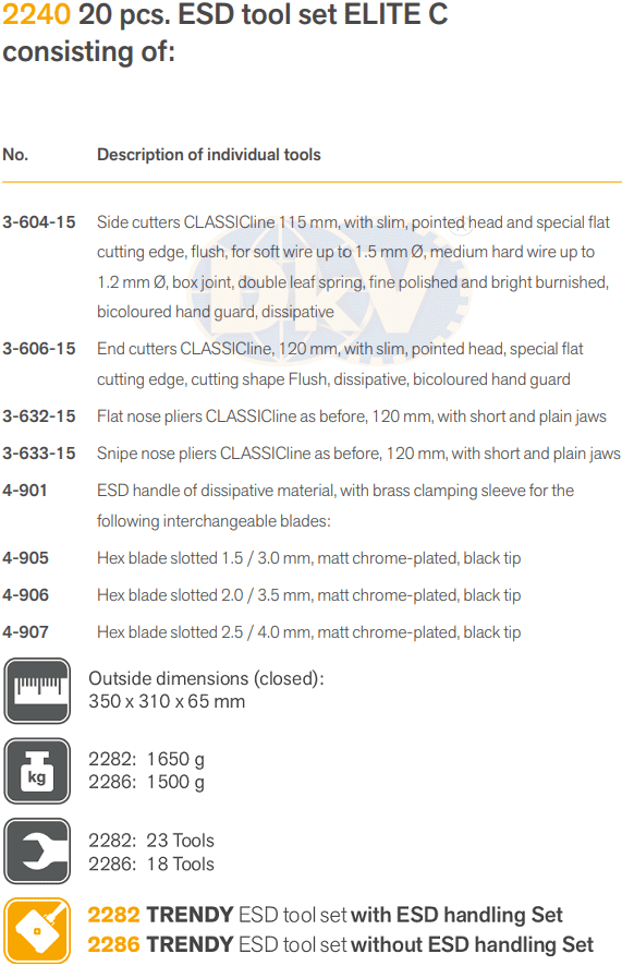 BỘ DỤNG CỤ CHỐNG TĨNH ĐIỆN BERNSTEIN 2240 | BERNSTEIN ESD TOOLS SETS 2240 | 20 pcs