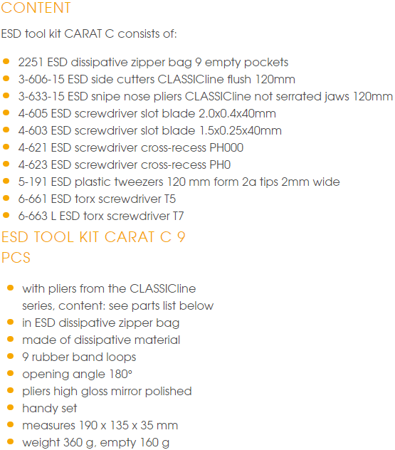 BỘ DỤNG CỤ CHỐNG TĨNH ĐIỆN BERNSTEIN 2270 | BERNSTEIN ESD TOOLS SETS 2270 | 9 pcs