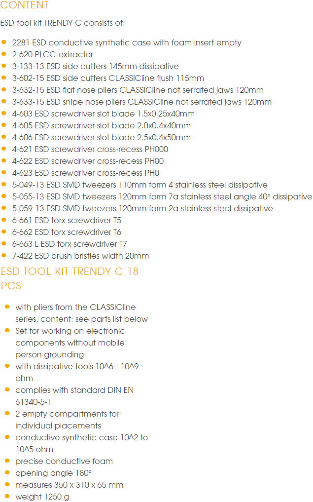 BỘ DỤNG CỤ CHỐNG TĨNH ĐIỆN BERNSTEIN 2286 | BERNSTEIN ESD TOOLS SETS 2286 | 18 pcs
