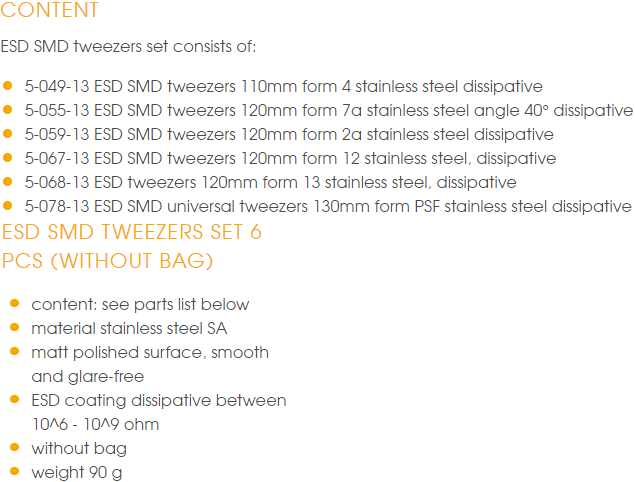 BỘ DỤNG CỤ CHỐNG TĨNH ĐIỆN BERNSTEIN 5-060-ES | BERNSTEIN ESD TWEEZERS SETS 5-060-ES | 6 pcs