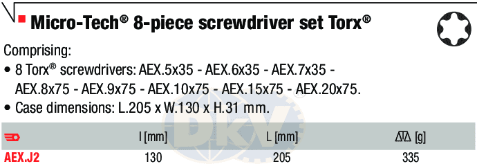 - Tô vít 6 cạnh tiêu chuẩn Torx dòng AEX.8x75: 1 chiếc.