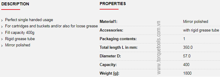 - Bơm mỡ bằng tay KS Tools 980.1020, KS Tools grease gun 980.1020 có dung tích 0.4 kg mỡ bôi trơn, chuyên dùng để bơm mỡ bôi trơn vào các vú mỡ, tại các vị trí bôi trơn kín trong công nghiệp.