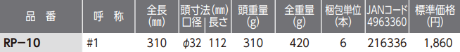 - Búa cao su O.H RP-10, O.H rubber hammer RP-10: là loại búa đầu tròn, cán bằng gỗ, có tiết diện: Ø 32 mm, chiều dài búa: 310 mm, trọng lượng đầu búa: 310 g, chuyên dùng trong công nghiệp.