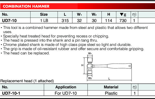 - Búa nhựa đầu tròn KTC UD7-10, KTC round plastic hammer UD7-10: là loại búa đầu tròn có tiết diện: Ø 32 mm, trọng lượng búa: 0.73 kg, chiều dài búa: 315 mm chuyên dùng trong công nghiệp.