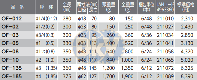 - Búa nhựa O.H OF-135, O.H plastic hammer OF-135: là loại búa đầu tròn, cán bằng gỗ, có tiết diện: Ø 48 mm, chiều dài búa: 360 mm, trọng lượng đầu búa: 1.2 kg, chuyên dùng trong công nghiệp.