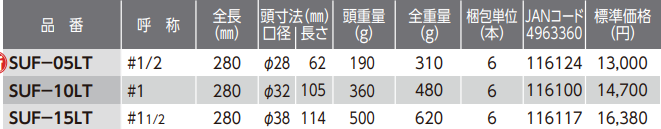 - Búa nhựa O.H SUF-15LT, O.H plastic hammer SUF-15LT: là loại búa đầu tròn, cán bằng nhựa công nghiệp, có tiết diện: Ø 38 mm, chiều dài búa: 280 mm, trọng lượng đầu búa: 500 g, chuyên dùng trong công nghiệp.