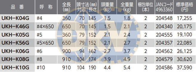 - Búa nhựa O.H UKH-K06G, O.H plastic hammer UKH-K06G: là loại búa đầu tròn, cán làm từ nhựa công nghiệp có chiều dài búa: 900 mm, trọng lượng đầu búa: 2.7 kg, chuyên dùng trong công nghiệp.