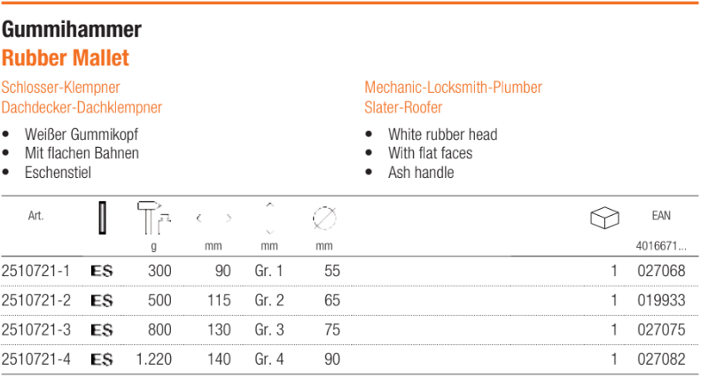 - Tiêu chuẩn chế tạo: DIN 7462, đầu búa được làm bằng nhựa , chịu va đập tốt, đặc biệt đầu búa tăng cứng, giảm thiểu bị toét khi đóng.