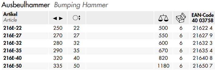 - Búa gỗ NWS 216E-32, NWS wood hammer 216E-32: là loại búa đầu tròn, có tiết diện: 32 mm, chiều dài búa: 280 mm, trọng lượng búa: 600 g, chuyên dùng trong công nghiệp.