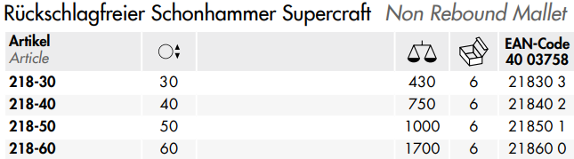 - Búa gỗ NWS 218-30, NWS wood hammer 218-30: là loại búa đầu tròn, có tiết diện: 30 mm, chiều dài búa: 330 mm, trọng lượng búa: 430 g, chuyên dùng trong công nghiệp.