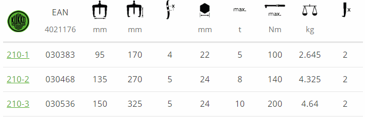 CẢO CƠ KHÍ 2 CHẤU KUKKO 210-2 | KUKKO 2 JAW PULLER 210-2 | 8 tấn | 135 mm