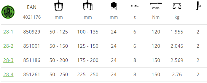 CẢO CƠ KHÍ 2 CHẤU KUKKO 28-4 | KUKKO 2 JAW PULLER 28-4 | 6 tấn | 250 mm