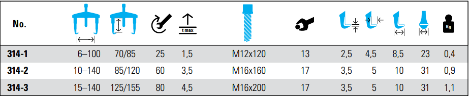CẢO 2 CHẤU NEXUS 314-1 | NEXUS 2-ARMS PULLER 314-1 | 1.5 tấn | 100 mm