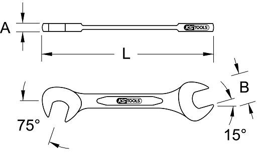 - Cờ lê chống tia lửa điện KS Tools 963.7120 thuộc loại 2 đầu miệng hở (đều 5 mm), chiều dài: 78 mm, thân phẳng, góc nghiêng đầu 150 / 750 .