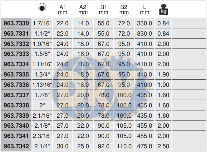 - Cờ lê chống tia lửa điện KS Tools 963.7335 thuộc loại 2 đầu hở/tròng cùng có độ mở (1.3/4"), có chiều dài (410 mm),một đầu có góc nghiêng 15⁰, thân thẳng (Offset).