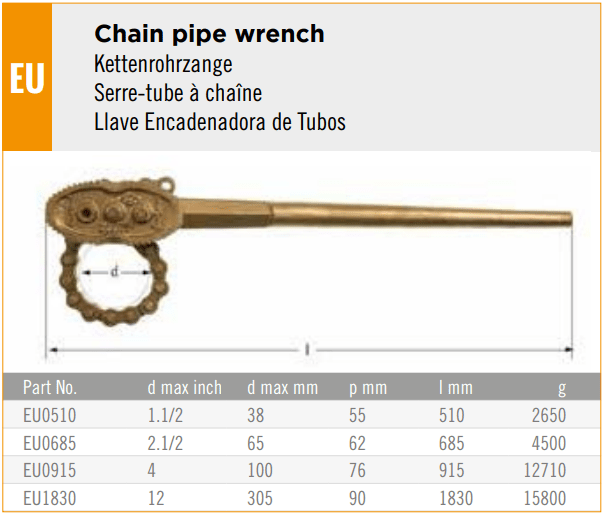 CỜ LÊ DÂY XÍCH CHỐNG CHÁY NỔ AMPCO EU0685 | AMPCO NON SPARKING CHAIN PIPE WRENCH EU0685 | Ø 65 mm
