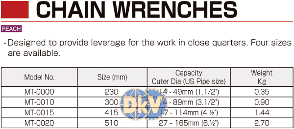 CỜ LÊ DÂY XÍCH MCC MT-0000 | MCC HIGH POWER CHAIN WRENCH MT-0000 | 19 mm | 230 mm