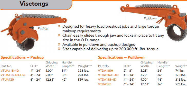 - Trọng lượng tổng thể cờ lê dây xích Petol VTDA116H-4D: 77 kg, được sản xuất tại hãng PETOL™ Gearench, bang Texas, Mỹ. Made in USA.