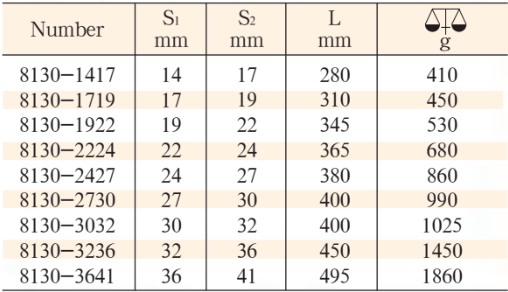 - Cờ lê đuôi chuột Inox X-Spark 8130-3641, X-Spark inox impact spanner 8130-3641 là loại cờ lê đầu khẩu 12 cạnh, có size trước (S1): 36 mm, và size sau (S2): 41 mm, chiều dài: 495 mm, chuyên dùng để siết bulong, đai ốc phù hợp với thi công tháo/lắp trong môi trường có từ tính cao.