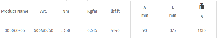 - Cờ lê lực cách điện Beta 606MQ/50 có cơ cấu đảo chiều quay (chiều siết) dạng núm xoay (trái/phải) thuận tiện cho phép đào chiều siết , chiều dài 375 mm, trọng lượng: 1.13 kg.