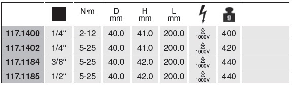 - Cờ lê lực cách điện KS Tools 117.1184, cờ lê siết lực cách điện KS Tools 117.1184, KS Tools insulated torque wrench 117.1184: có dải lực siết 5 - 25 N.m, cỡ khẩu 3/8", chuyên dùng để siết lực (moment) chính xác các loại bulong, đai ốc trong môi trường điện cao thế (< AC 1.000 V, < DC 1.500V).