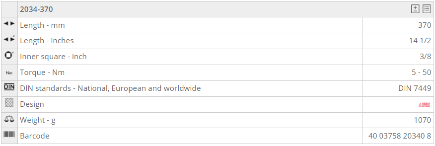 - Cờ lê lực cách điện NWS 2034-370 được chế tạo và thử nghiệm theo tiêu chuẩn DIN EN ISO 67892: 2017, DIN3120, ISO 1174-1, IEC 60900:2018. Sai số chế tạo: +/- 4%. Với số lần siết khuyến nghị > 5.000 lần mới phải hiệu chuẩn.