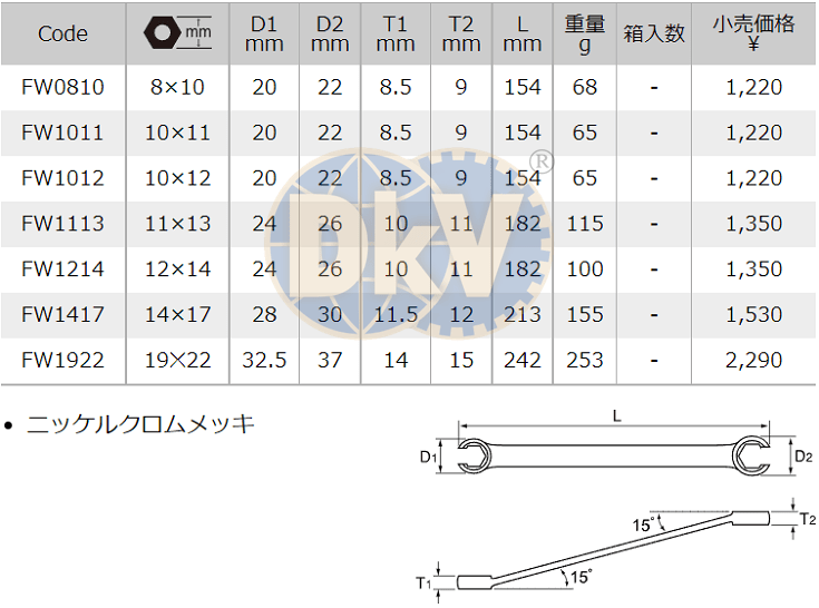 CỜ LÊ ASAHI FW1922 | CỜ LÊ MIỆNG HỞ ASAHI FW1922 | ASAHI DOUBLE OPEN ENDED SPANNERS FW1922 | 19 x 22 mm